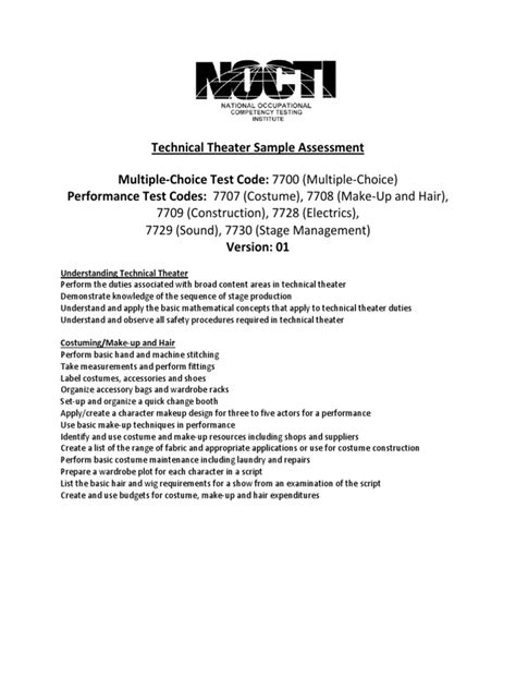 Download TECHNICAL THEATER SAMPLE ASSESSMENT MULTIPLE CHOICE TEST NOCTI Reader